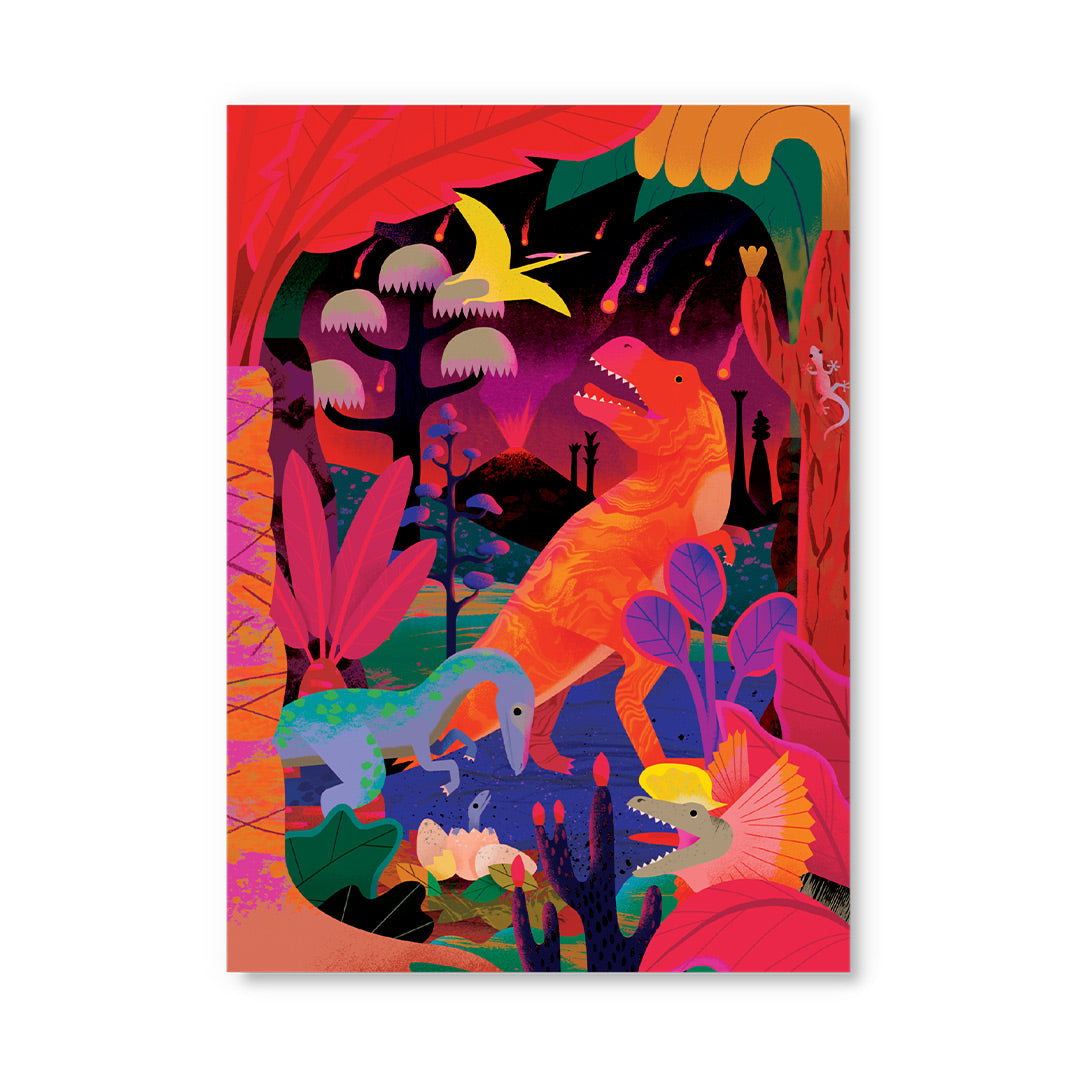 Go back in time - if you dare! Natasha Durley’s fierce prehistoric carnivores liven up this postcard, roaring with ancient intrigue.