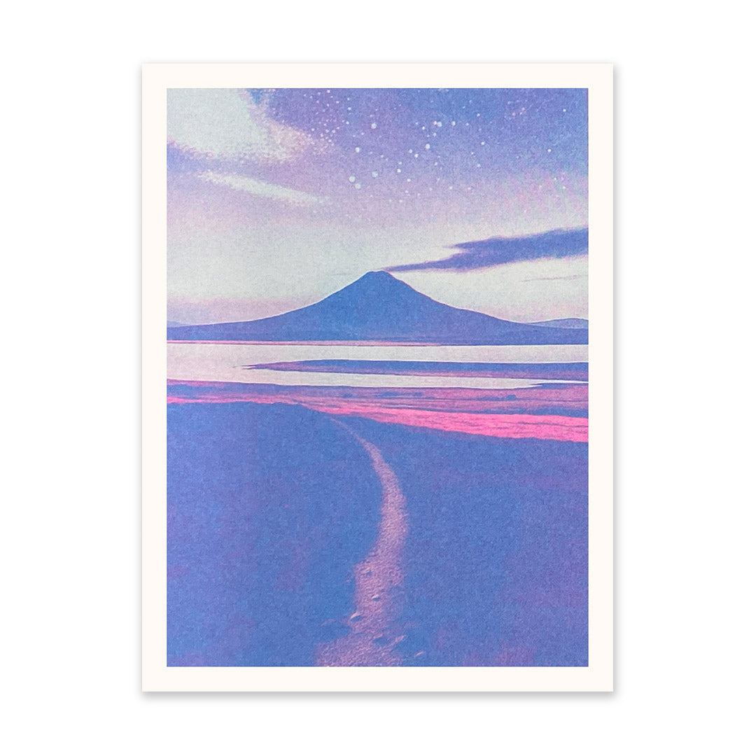 Transform your space with the calming Purple Landscape 2 Art Print by Ohh Deer. This Risograph print, created with sustainable soy based ink, is printed on high-quality Munken Pure card for a truly eco-friendly and aesthetic addition to your home. Let it inspire relaxation and tranquility in any room.